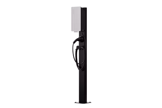 A kialakítás lehetővé teszi a vezetékek teljes elrejtését, mivel a kábelek a töltő hátulján keresztül érkeznek a tartóoszlop felől.