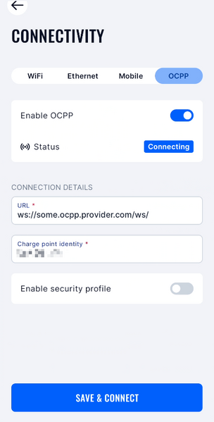 3. Csatlakoztasd a töltőállomást az OCPP 1.6 JSON szerveredhez. A töltő az OCPP 1.6 JSON protokoll segítségével fog kommunikálni a szerverrel.